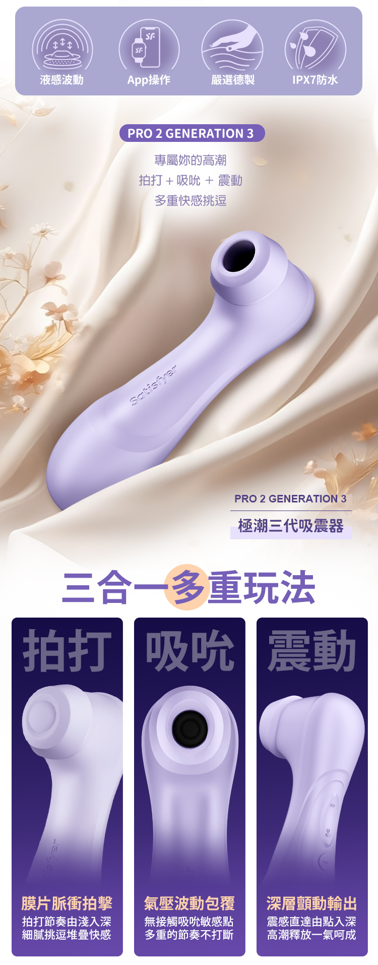 Satisfyer Pro 2 Generation 3 極潮三代|丁香紫,以創新的 液態氣波技術 帶來前所未有的「液感波動」。